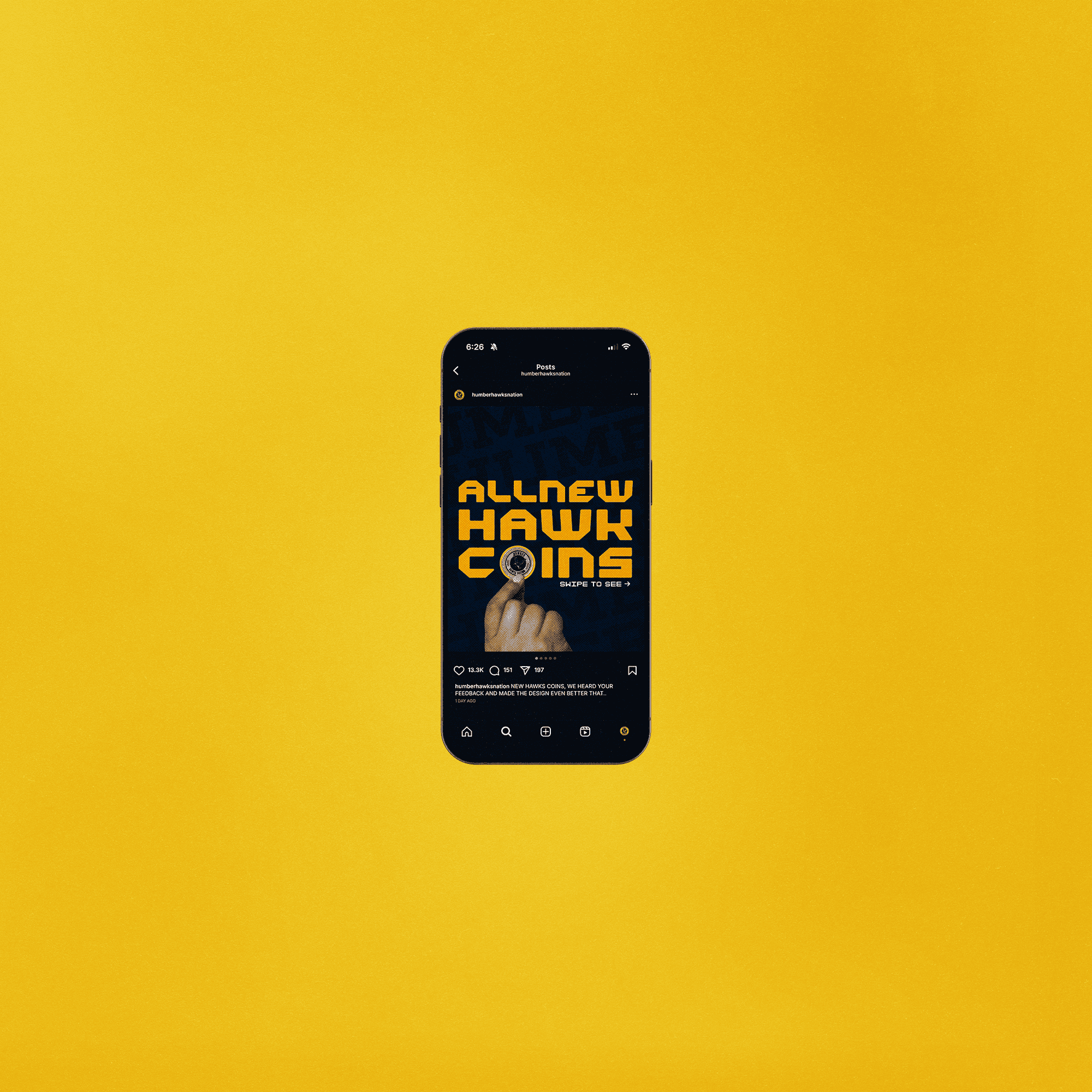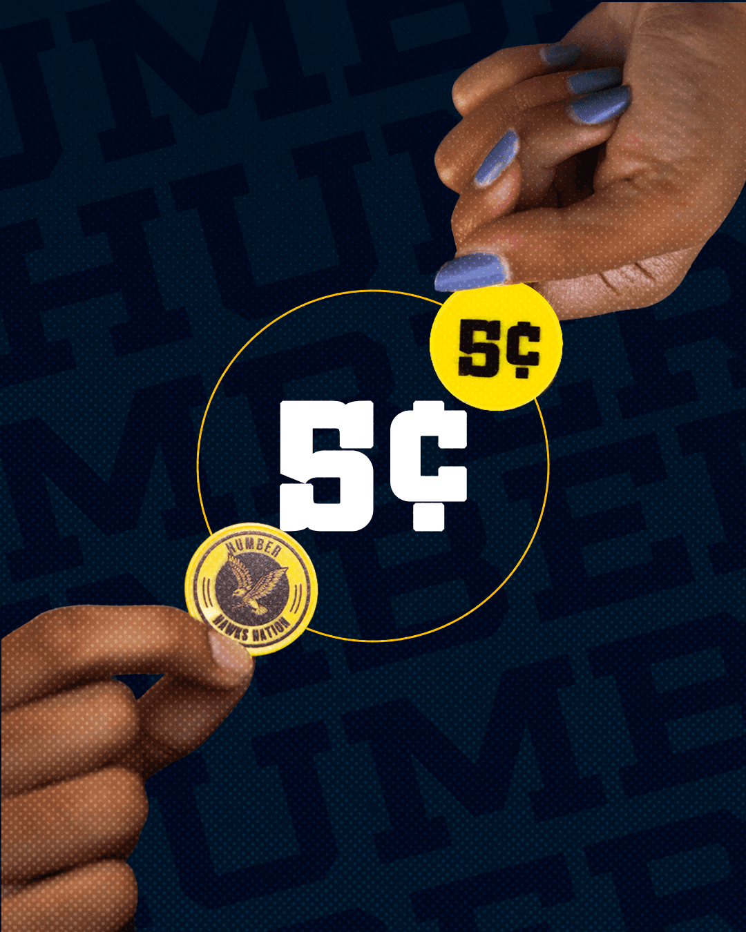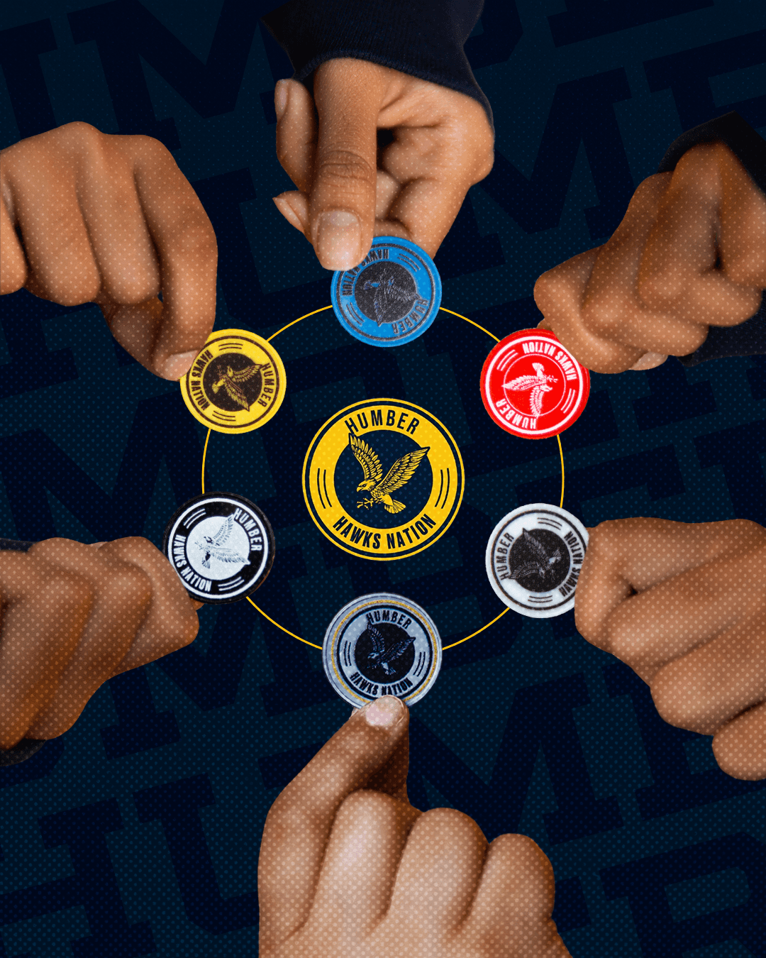 he creative direction focused on a "hands-on" approach—literally. I used photography of diverse hands holding the coins to emphasize the community aspect of "Humber Hawks Nation".